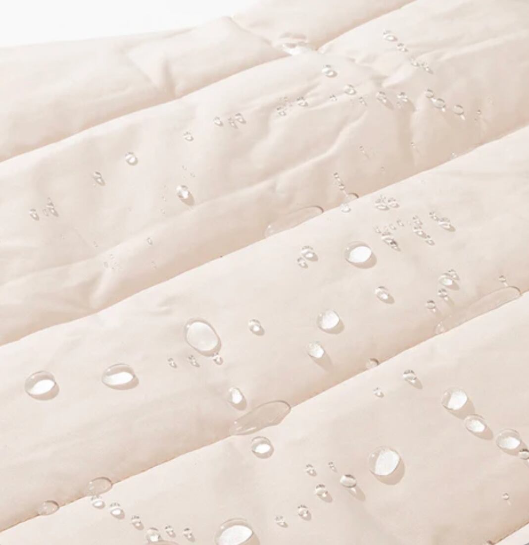芝生の上、椅子の上、室内、カフェやレストラン、ペットカートの中など様々な空間で衛生的に使用でき、簡単に持ち運ぶことのできるクッションマットを目指して作られました。このクッションマット最大の特徴でもある超軽量でマットを丸めることで、コンパクトになりストラップを使い手に持ったり、肩からかけることもでき、いつでもどこにでも持ち運びができます。