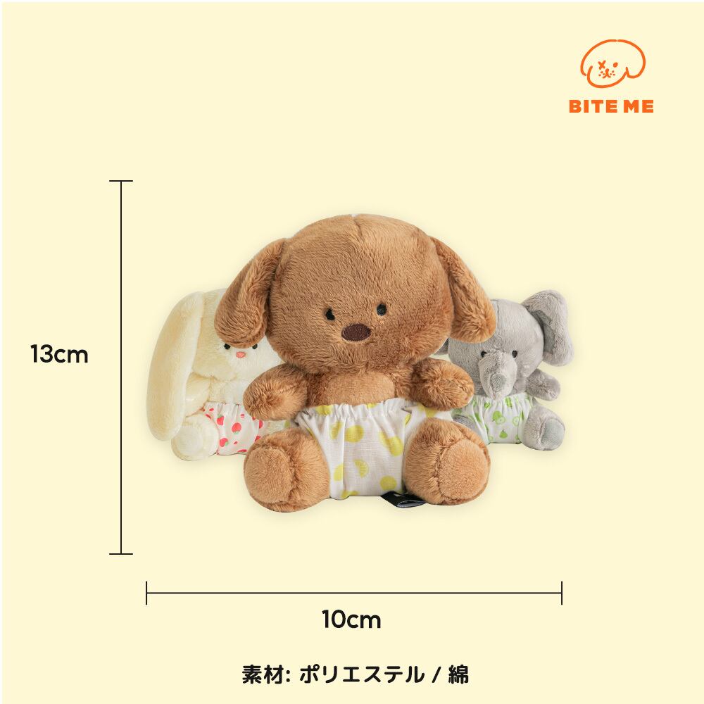 MY LITTLE ANIMAL FRIENDS! ワンちゃんに可愛いどうぶつのお友だちをプレゼント。 私の愛着ぬいぐるみおもちゃはピーピー音とカシャカシャ音 そしてノーズワーク遊びでワンちゃんを飽きさせません。 フルーツ柄のパンツの中におやつを隠してノーズワーク。 パンツは取り外しも可能です。 どうぶつのぬいぐるみたちと一緒に眠るワンちゃんをついつい想像してしまいます。 また、小型犬にもおすすめのサイズ感でプレゼントにも◎