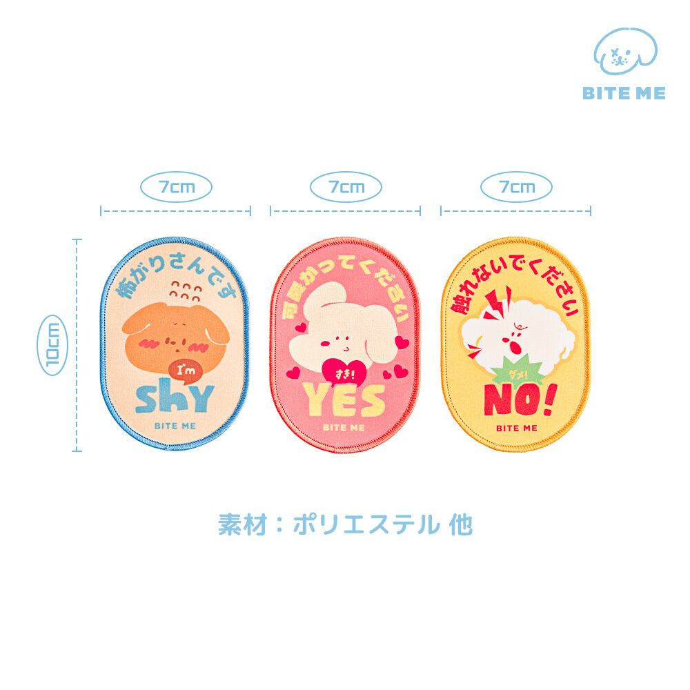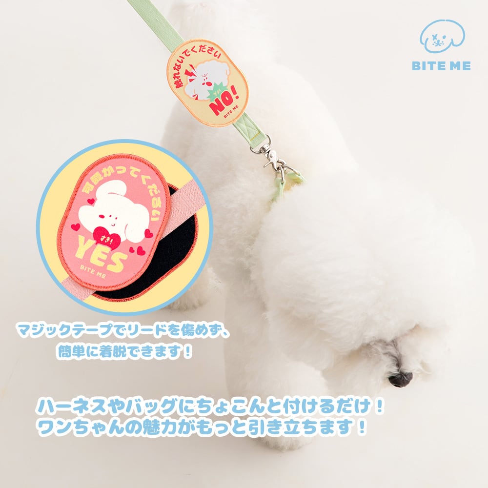 【日本限定発売】ワンちゃんの気持ち、このワッペンが代弁します! リードやバッグに簡単に取り付けられるマジックテープタイプです。 『Shy / No / Yes』の3タイプがございます。