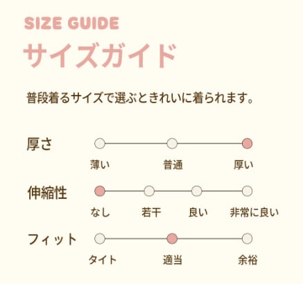 ※着用サイズは人の手で測定しているため、若干の誤差がある場合がございます。