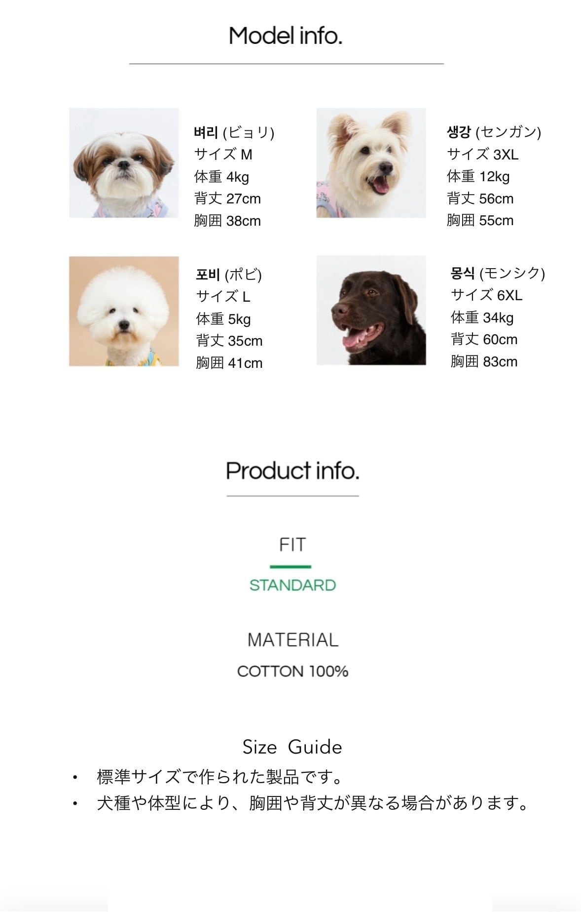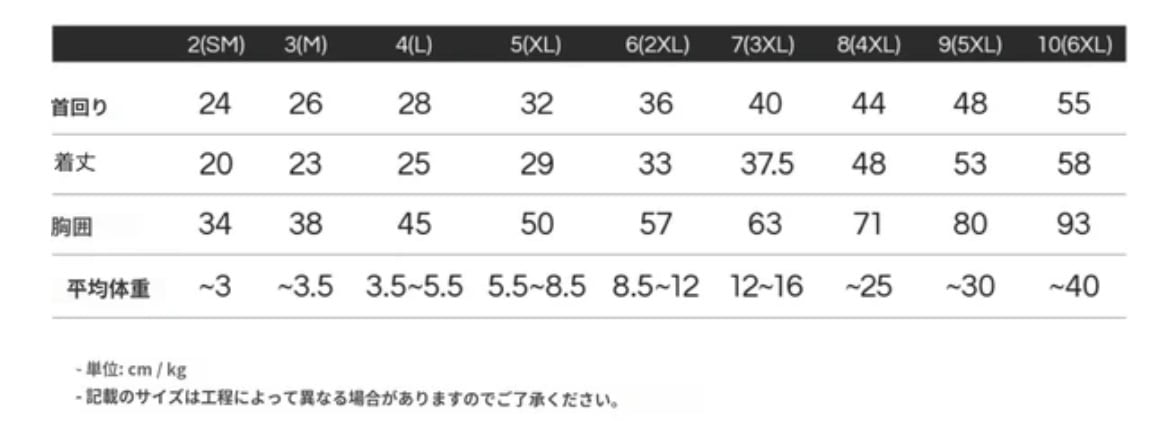 ※商品サイズをお選びいただく際、着丈が長すぎなければ、胸囲と首回りはペットの測定サイズより1〜2cmほど余裕を持ってお選びください。