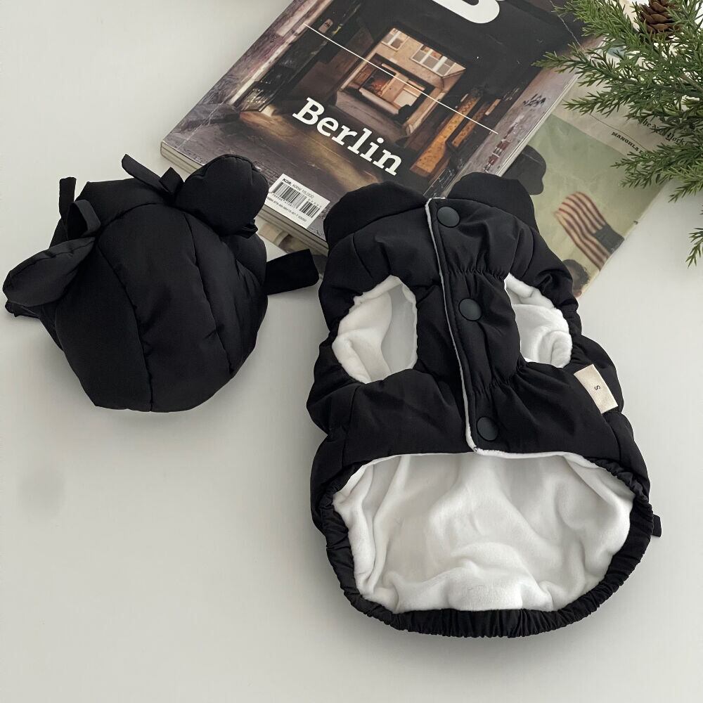 宇宙服に使用される3Mシンサレートを使用し軽くて暖かく着ることができます。ハーネスリングが付いているのでリードをつけてそのままお散歩へ行く事も可能です。裏地フリースになっていて着心地がよいです。