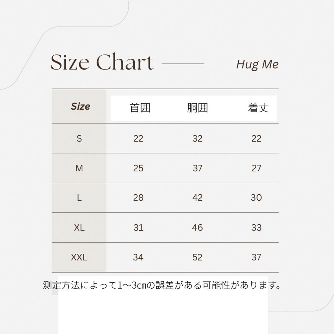 ※着用サイズは人の手で測定しているため、若干の誤差がある場合がございます。