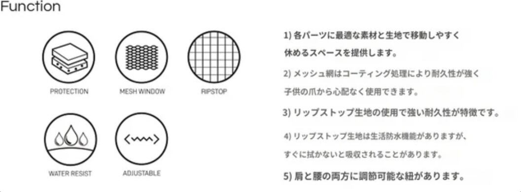 顔を隠す必要がある際には、全てに窓がメッシュになっているので、メッシュを閉めることで商業施設や公共交通機関でのご使用も可能に。