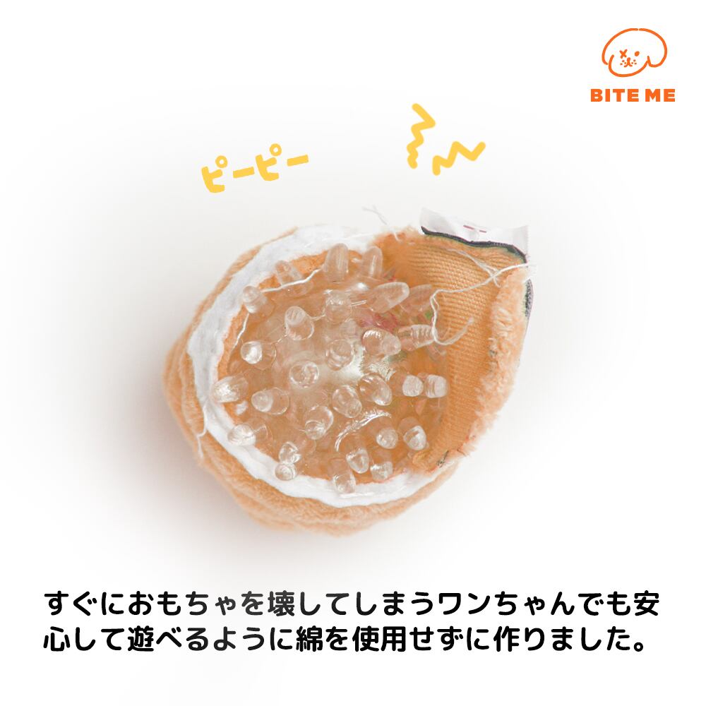 大人気のボールがリニューアルしました! ボール遊びに本気なワンちゃんたち注目してください! ふわふわ~かわいいボール二匹! すぐにおもちゃを壊してしまうワンちゃんでも安心して遊べるように綿を使用せずに作りました。 一口サイズの大きさなので、思いっきり投げて楽しく遊ぶことができます!