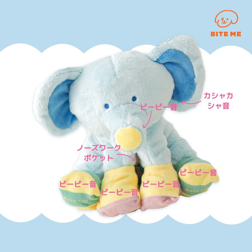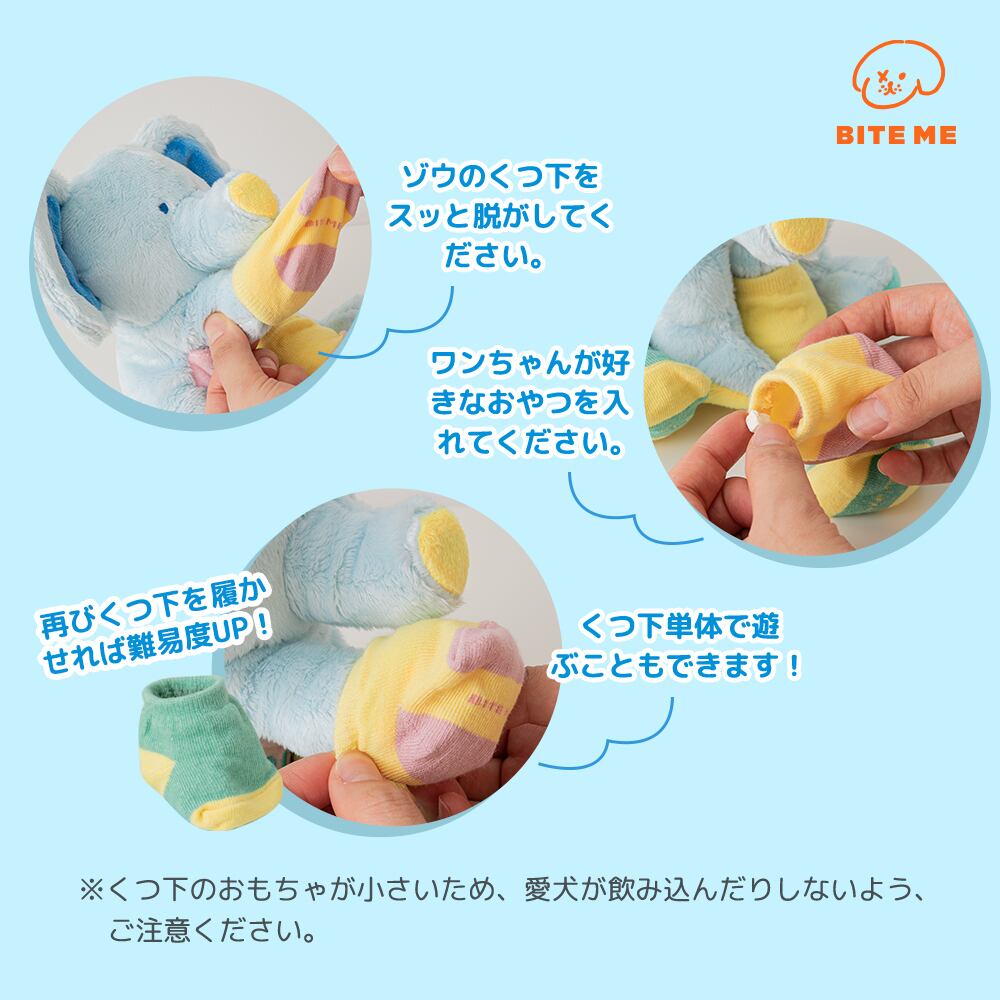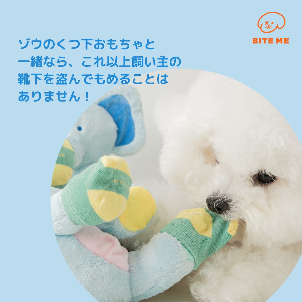 ゾウのくつ下おもちゃと一緒なら、これ以上飼い主の靴下を盗んでもめることはありません! ゾウのくつ下おもちゃは柔らかい素材でできているので、ワンちゃんが噛んで引っ張っても安全です。 ピーピー音が鳴る場所が5箇所あるので、噛む楽しさも感じられます。ふわふわしているので抱きしめて寝るのもオススメです。