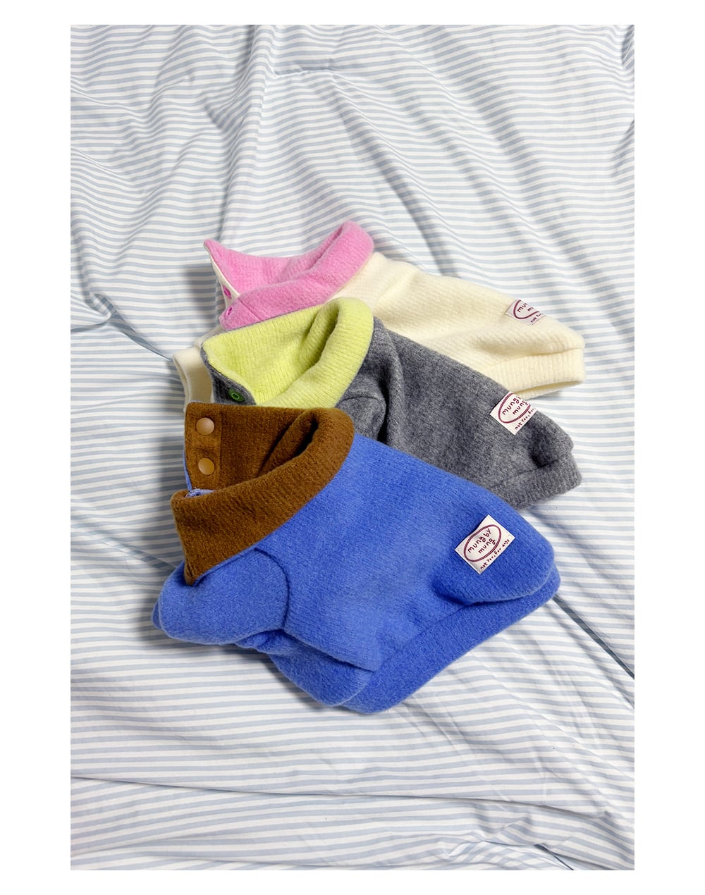 【mung×mung】ふっくら襟のあったかトップス ブルー×ブラウン
